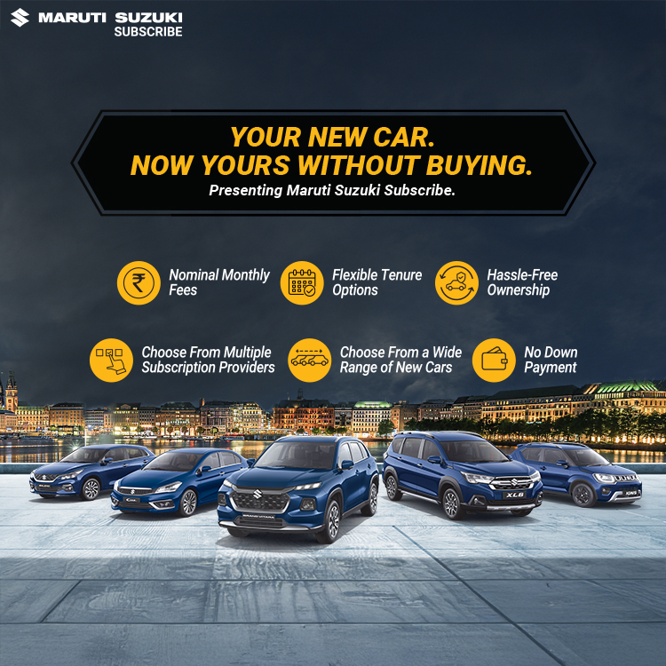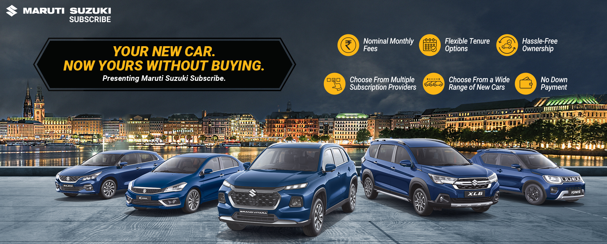 Maruti Suzuki Subscribe enables all customers to enjoy driving their preferred Maruti Suzuki cars without having to deal with all the financial responsibilities that come with owning a car.All you need to do is opt for a monthly subscription plan at a fixed monthly fee, which includes the routine maintenance and insurance costs, and choose a flexible tenure. At Jyote Motors in, , Bhubaneshwar, all Hatchback, Sedan, SUV, the MUV models line-up includes Baleno, Invicto, EVitara, Jimny, Ciaz, Ignis, Fronx, Grand Vitara, XL6. Here, you will enjoy Maruti Suzuki Subscribe benefits such as:
